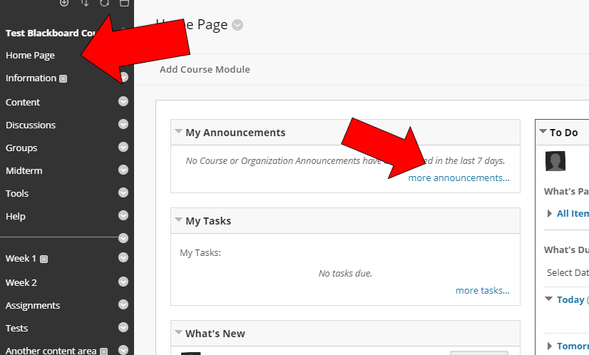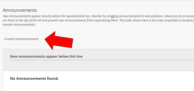 To set one up, go to your Home Page. You should see an Announcements area. Click on “more announcements…”
