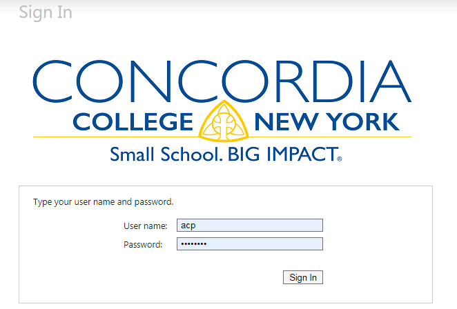 Please click here to access CUNE’s Blackboard site. Make sure you click the Concordia New York Login button: