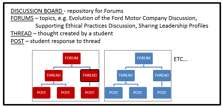 - The Discussion Board is composed of Forums.