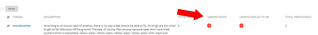 To the right of the forum description is a summary of posts made to the forum, including the total posts made, the number of unread posts, and the total participants in the discussion.