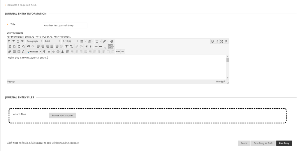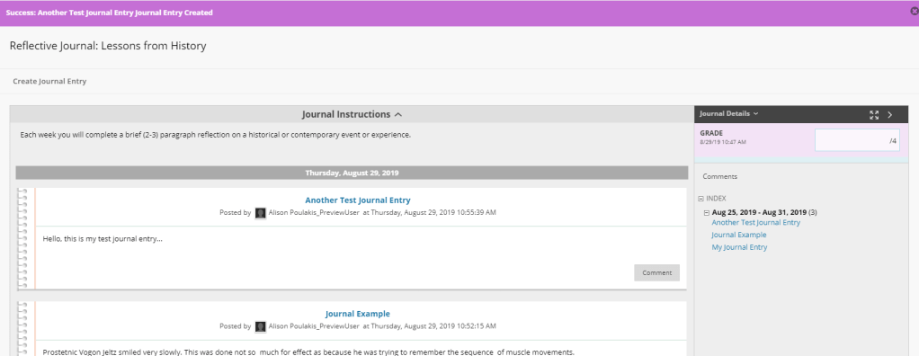 The Student can see all entries related to Reflective Journal: Lessons from History.