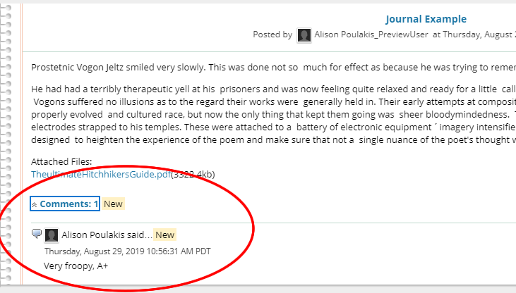 Review student submission. Click Comments at the bottom of a submission to comment to student.