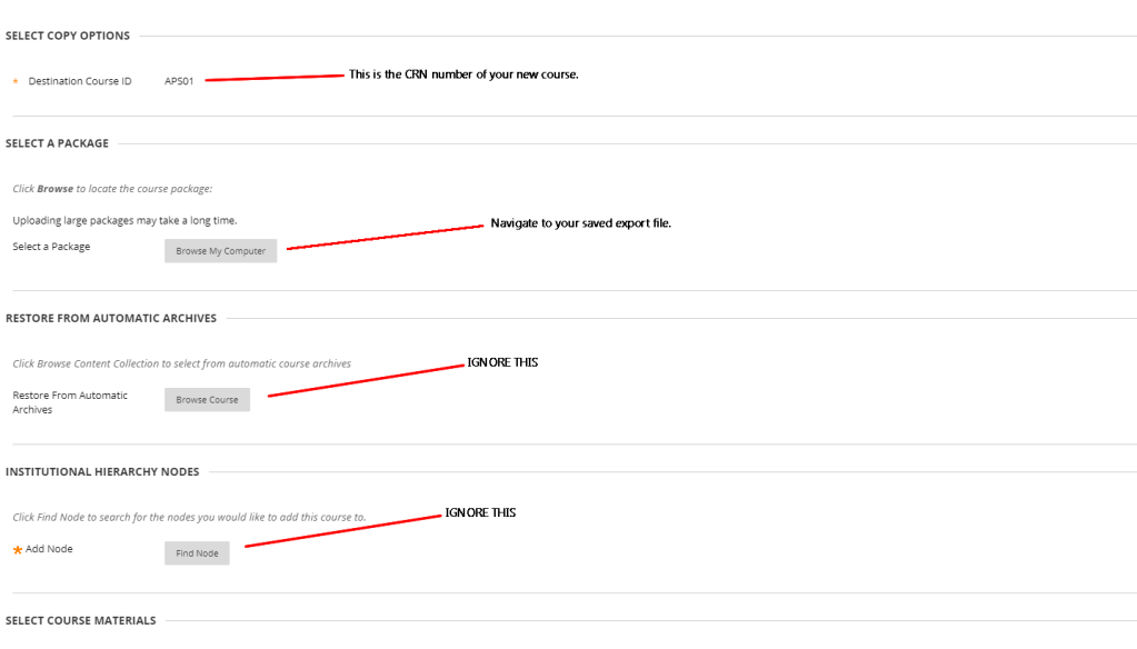 Only do one import – multiple imports could result in duplicate files, which will raise the size of your course. This could potentially cause issues in Blackboard. Do one import, and if you need to add or edit anything, you can do it directly within your course by following the instructions here.