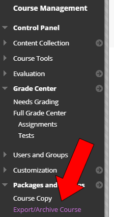 Under Course Management, go to Packages and Utilities, Export/Archive Course: