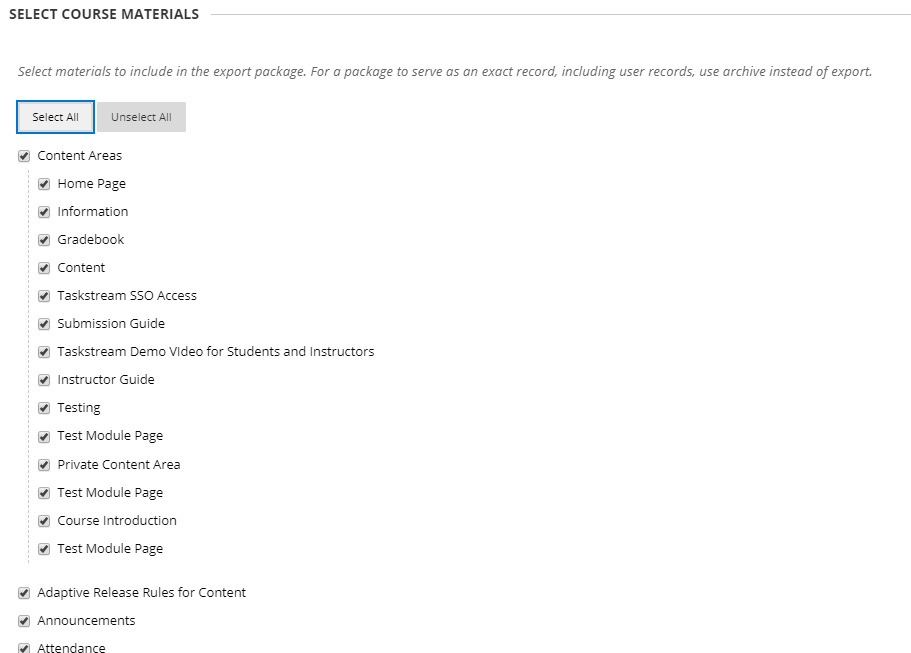 On the next page, choose which materials you would like to move over. You can also choose “Select All”: