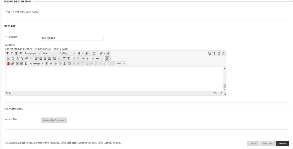 After clicking Create Thread, you will be taken to a page where you can give your thread a title and type in your comment. Some forums also give you the option of adding a file if necessary. Once completed, click Submit: