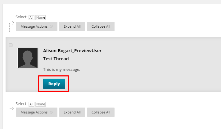 If you click on a thread to add a comment, you can do so by clicking the name of the thread. You will see the screen below. Click Reply to add your comment: