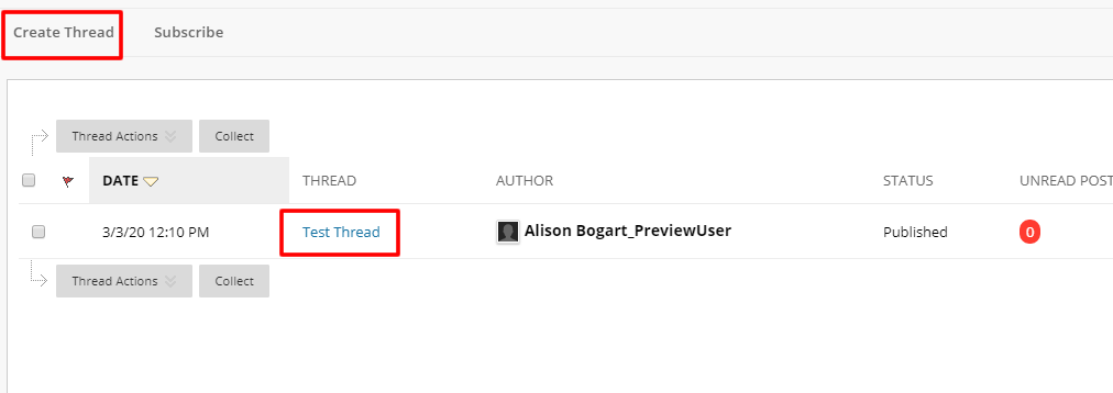 Click on Create Thread to start a new thread. You can also click on an existing thread to add your comments: