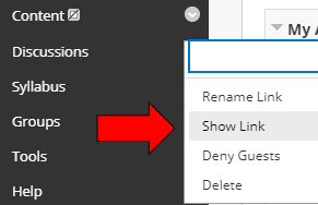 If you see this, just click the down arrow next to the hidden content area and choose Show Link: