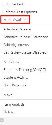 You may also not want your item to be indefinitely available. You can change this by going to “Edit Test Options” (or “Edit” if your item is not a test) and changing the date restrictions: