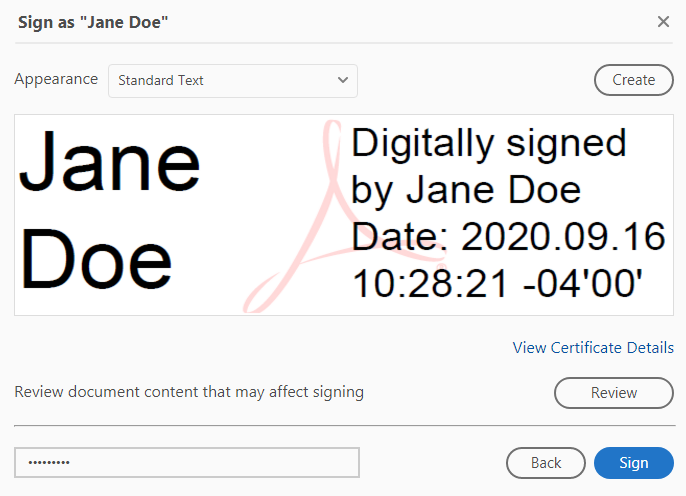 Now you will be shown your Digital ID. You should enter your password at the bottom before continuing: